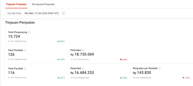 Contoh performa penjualan harian dari salah satu toko marketplace yang kami tangani.