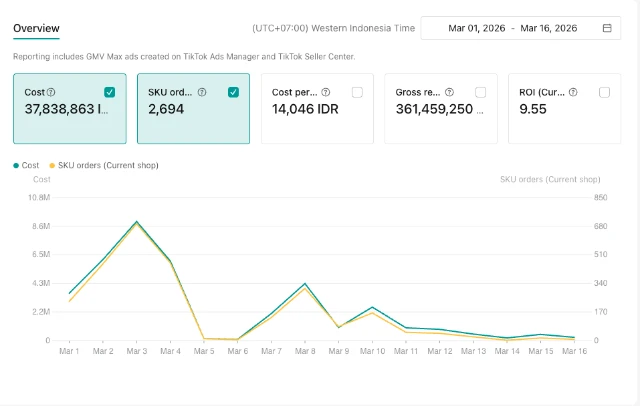 Campaign TikTok Ads yang menghasilkan lebih dari Rp361 juta penjualan dengan biaya iklan sekitar Rp37 juta.